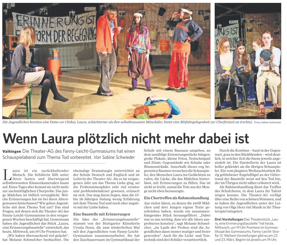 Theater-AG, Theaterstück „Laura, eine Erinnerungsbaustelle“