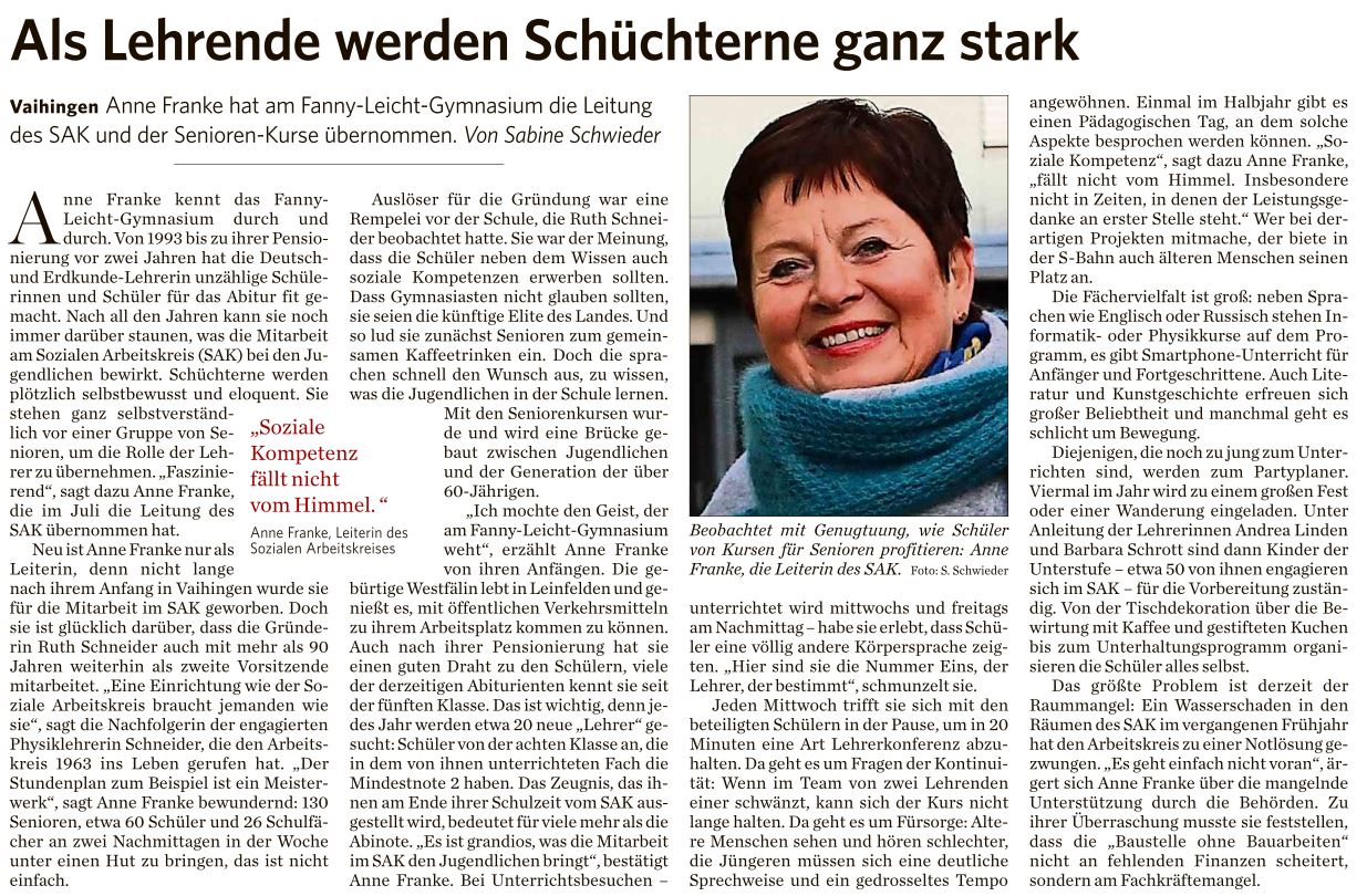 Vaihingen, Sozialer Arbeitskreis am Fanny-Leicht-Gymnasium, Senioren-Kurse, Soziale Kompetenz