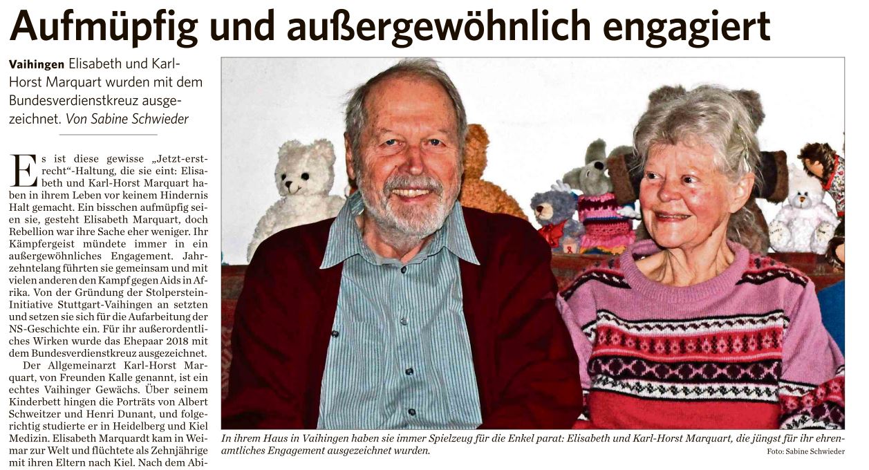 Elisabeth und Karl-Horst Marquart erhalten Bundesverdienstkreuz