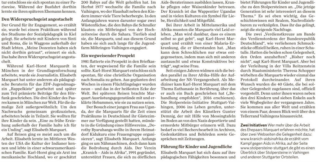 Stolperstein-Initiative Stuttgart-Vaihingen, Verein „Kranich – Aids in Afrika“