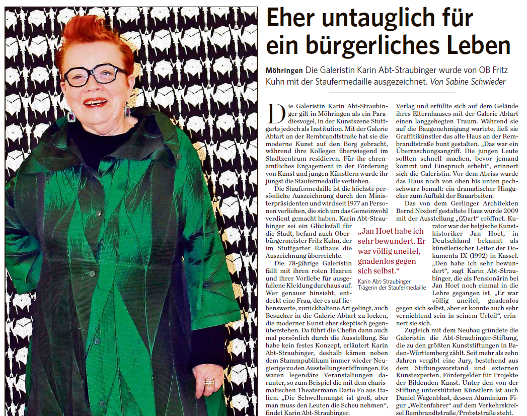 Die Galeristin Karin Abt-Straubinger erhält die Staufermedaille