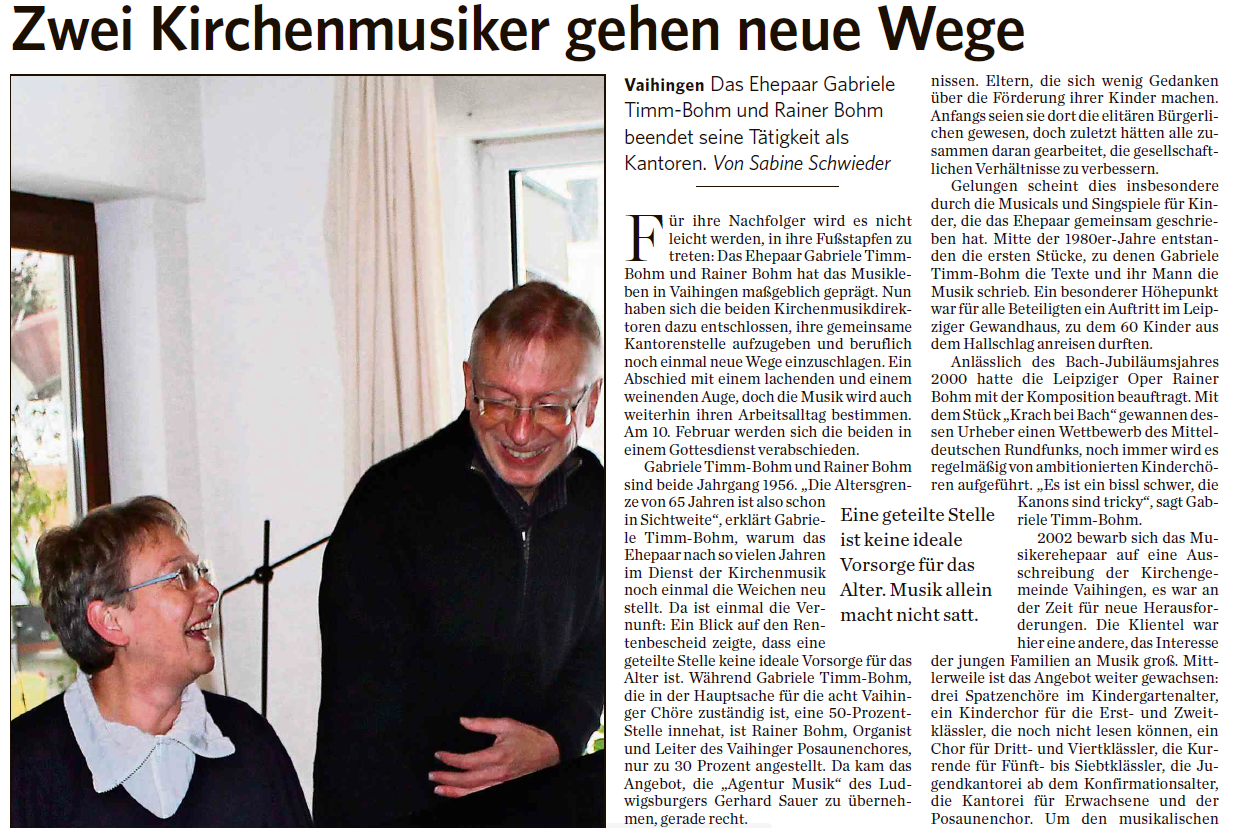 Verabschiedung der Kantoren Gabriele Timm-Bohm und Rainer Bohm