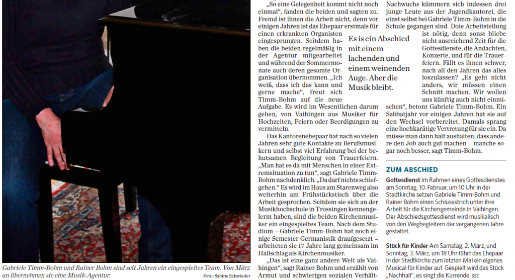 Möhringen, Chorleiterin, Organist, Agentur Musik